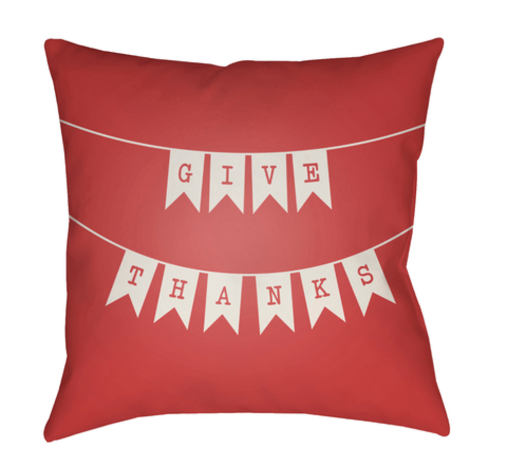 Surya BNR003-1818 Banner Medium Throw Pillow, 18 x 18 x 4 in. - Red & White