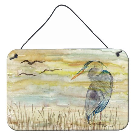 Caroline's Treasures SC2020DS812 Blue Heron Yellow Sky Wall or Door Hanging Prints Aluminum Metal Sign Kitchen Wall Bar Bathroom Plaque Home Decor, 8x12, Multicolor