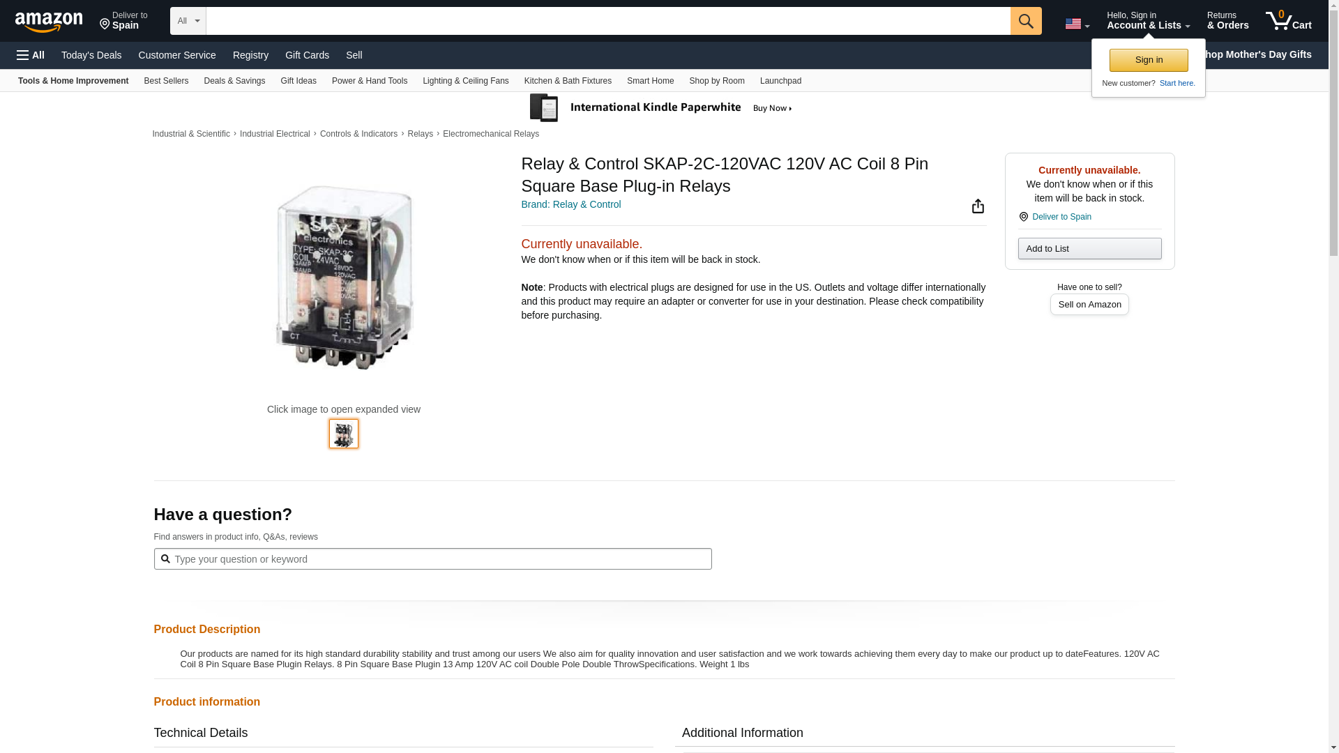 Toolschest.com|Toolschest.com. Relay & Control SKAP-2C-120VAC 120V AC Coil 8 Pin Square Base Plug-in Relays