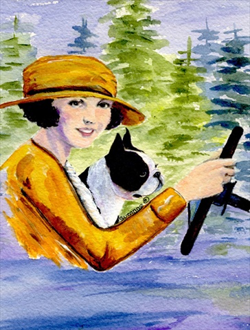 Carolines Treasures SS8534CHF Woman driving with her Boston Terrier Canvas Flag - House Size, 28 x 40 in.