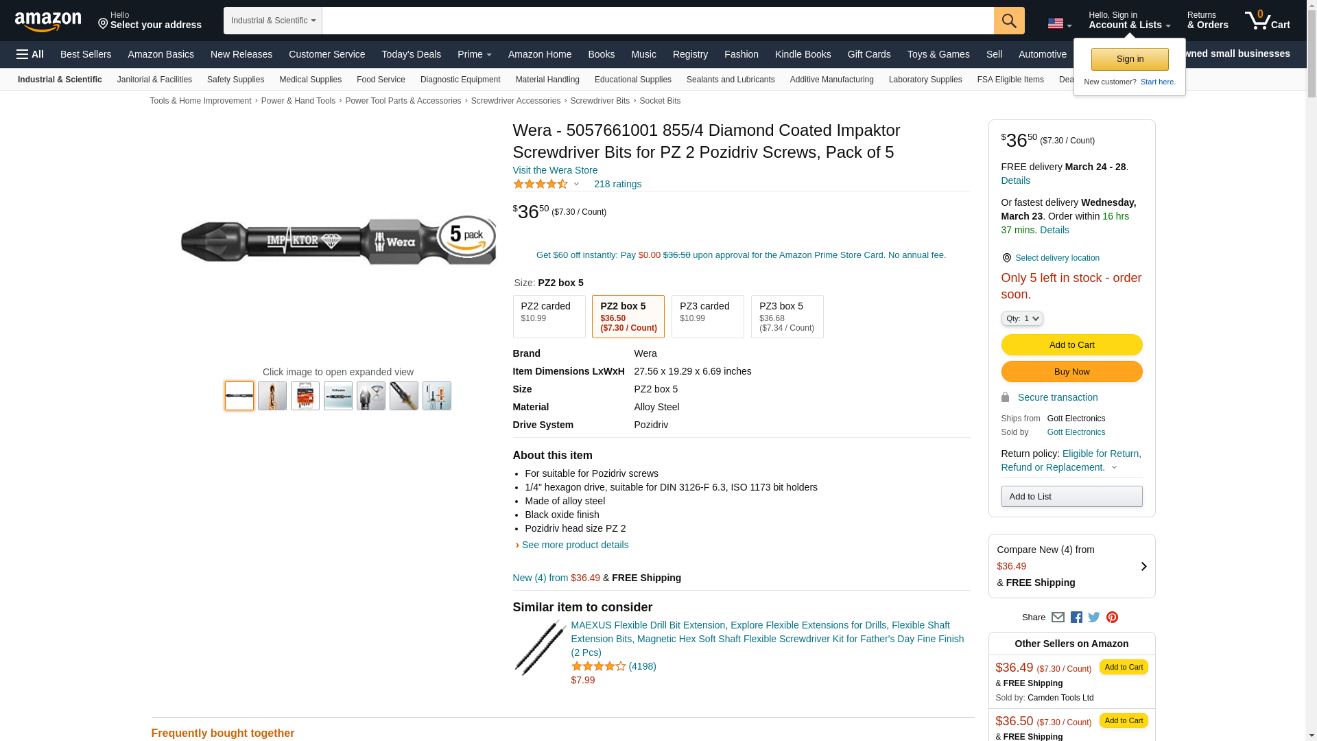 Wera - 5057661001 855/4 Diamond Coated Impaktor Screwdriver Bits for PZ 2 Pozidriv Screws, Pack of 5