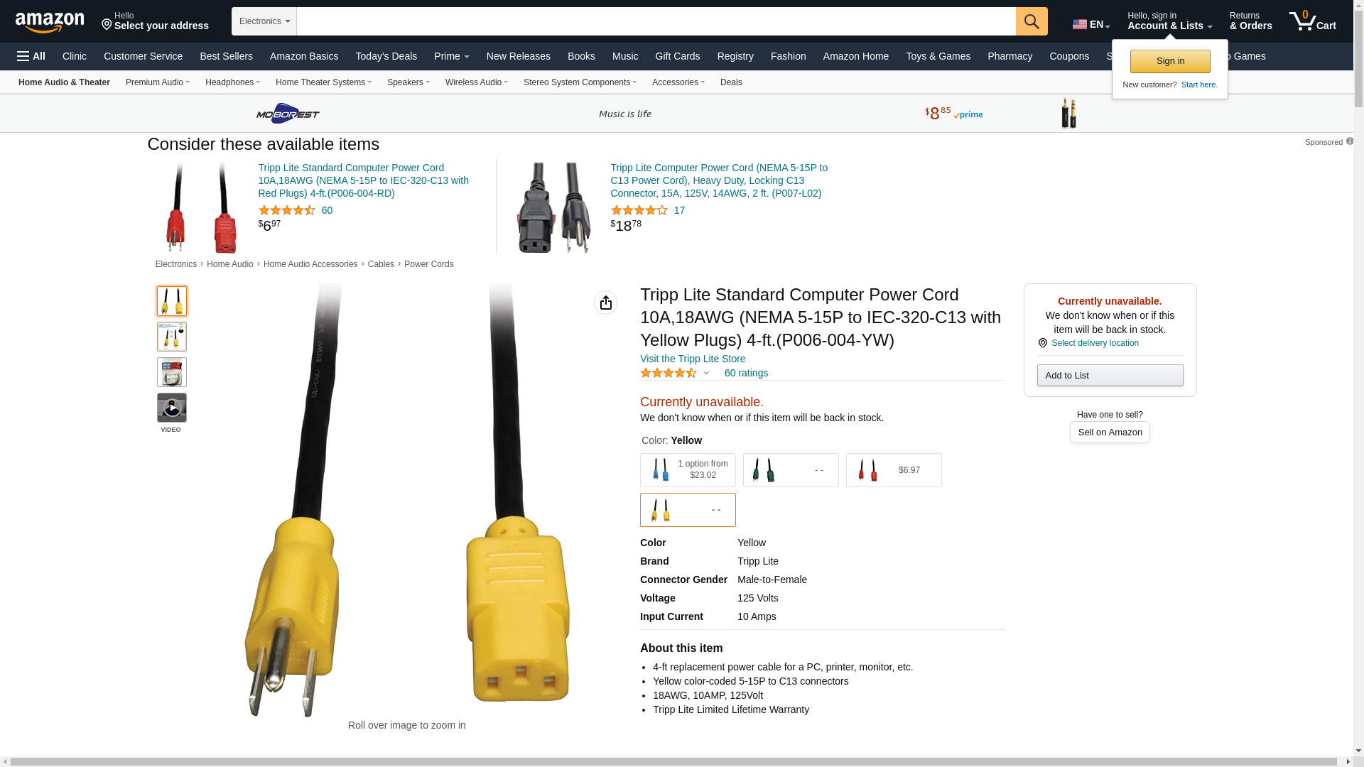 tripp Lite's Line Of Color-coded Ac Power Cords Offer Quick Identification Of Your Computer Cables. This 4-ft. Cable With Yellow Connectors Will Replace The Power Cable On Most Computers And Peripherals That Have A Removable Power Cord. Cable Features An Ac Style Plug (nema 5-15p) On One End And A Computer Style Receptacle (iec-320-c13) On The Other End. Cable Has Both Ul And Csa Approvals. Tripp Lite Warrants This Product To Be Free From Defects In Materials And Workmanship For Life.