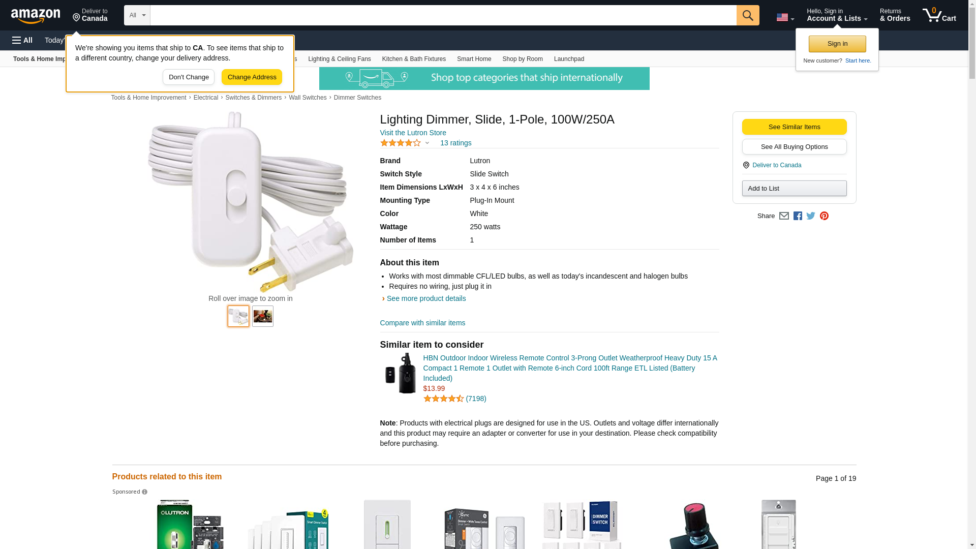 Credenza Color: White Watts: 100 watts Switch Type: Plug-In Product Type: Dimmer Number in Package: 1 pk Amps: 1 amps UL Listed: Yes CSA Listed: Yes Poles: Single Pole Material: plastic Volts: 120 volt Cord Length: 6 ft. *Works with up to 100 watts of most dimmable CFL/LED bulbs or 250W of Incandescent/Halogen bulbs *Requires no wiring - just plug in *Uses HED Technology which features advanced dimming that is designed for compatibility with most high efficiency light bulbs *Slide to turn the light on/off (up to brighten and down to dim)