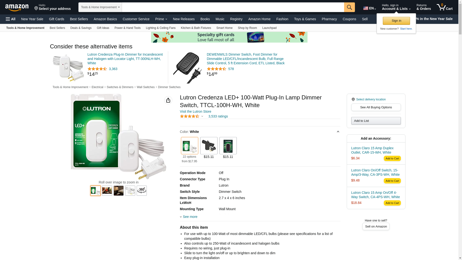 ![]() electricbargainstores.com | LUTRON-TTCL-100H-WH | 1 | Usually Ships in 3-5 business days. Urgent Project | 1 | |