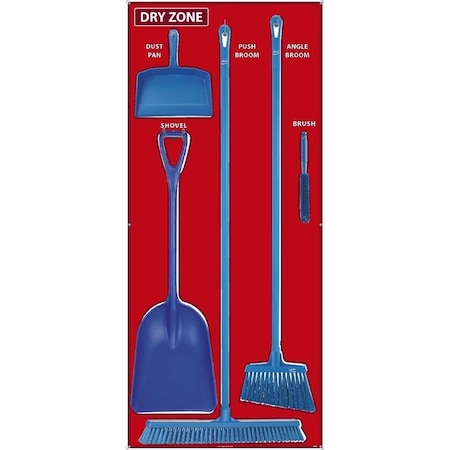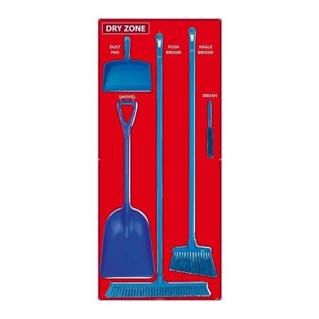 National Marker Dry Zone Shadow Board Combo Kit, Red/White, 68 X 30, Alum Composite Panel - SBK125ACP Many manufacturing and food processing facilities are implementing 5S Shadow Boards to help reduce cost and down time by keeping cleaning supplies (and other tools), in a central location, neatly stored, and always accessible. Features: Ideal for basic maintenance and organizational use Includes Shadow Board and hardware for mounting tools Vikan brand tools included: 12' Angle broom, 24' Push Broom with 59' Handle, Dust pan, Bench brush, Single piece shovel with 14' blade. Lightweight, dual-layered aluminum with plastic core Protected by Sign Muscle liquid laminate Temperature range of -60° to 180° Product Details Description Dry Zone Shadow Board Combo Kit Material General Purpose Aluminum Composite Temperature Range -60° to 180 °f Color Family White on Red Weights & Dimensions Width 30 in Height 68 in Thickness 0.118 in Weight 18 lbs