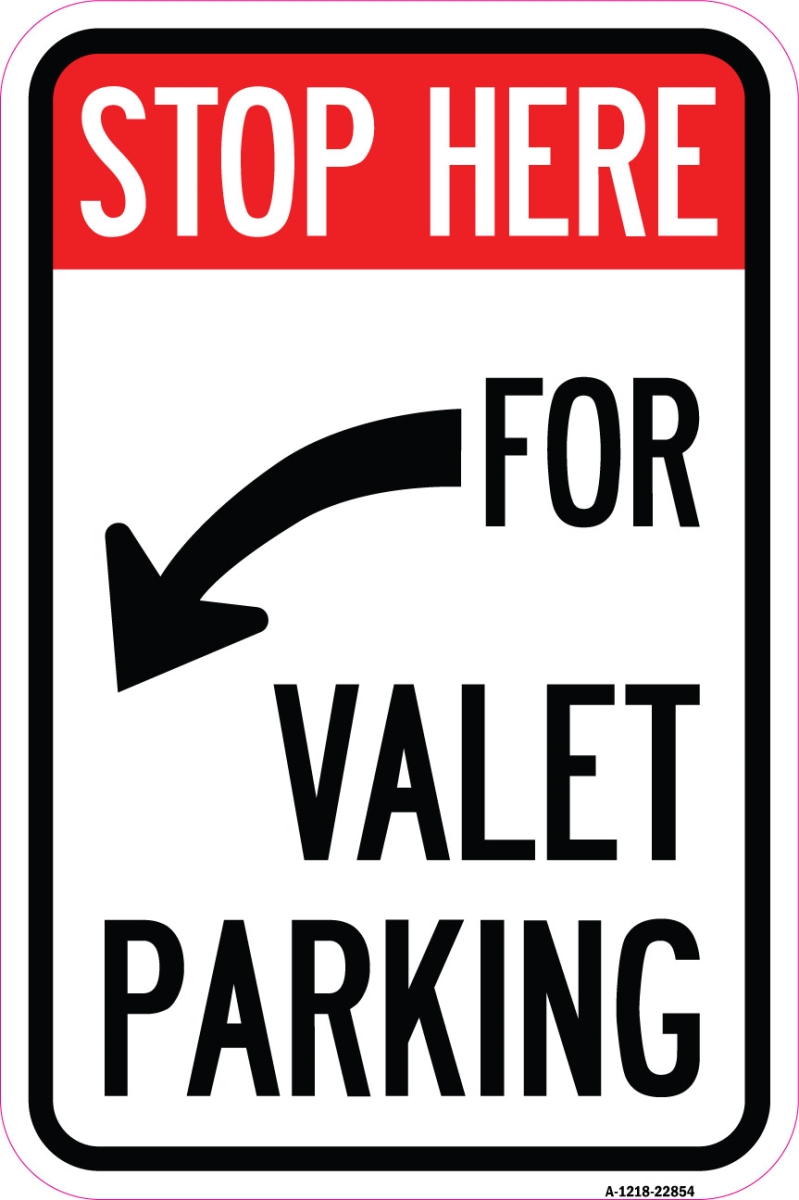 Stop Here for Valet Parking Left Arrow Heavy-Gauge Aluminum Sign