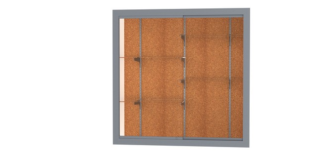 Harbor Series 1400 Recessed Display Case, 48"L, Satin Natural Aluminum Frame, Cork Display Back, White Laminate Display Sides