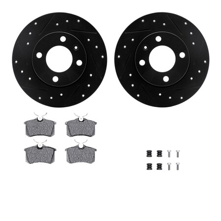 8512-74010, Rotors-Drilled and Slotted-Black w/ 5000 Advanced Brake Pads incl. Hardware, Zinc Coated