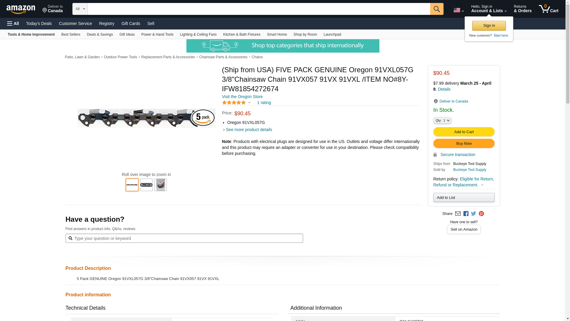 (Ship from USA) FIVE PACK GENUINE Oregon 91VXL057G 3/8"Chainsaw Chain 91VX057 91VX 91VXL /ITEM NO#8Y-IFW81854272674