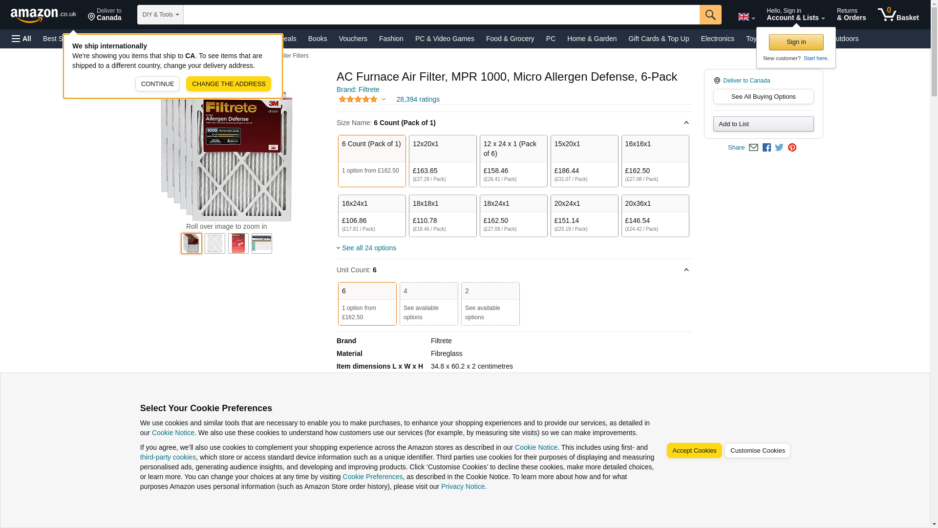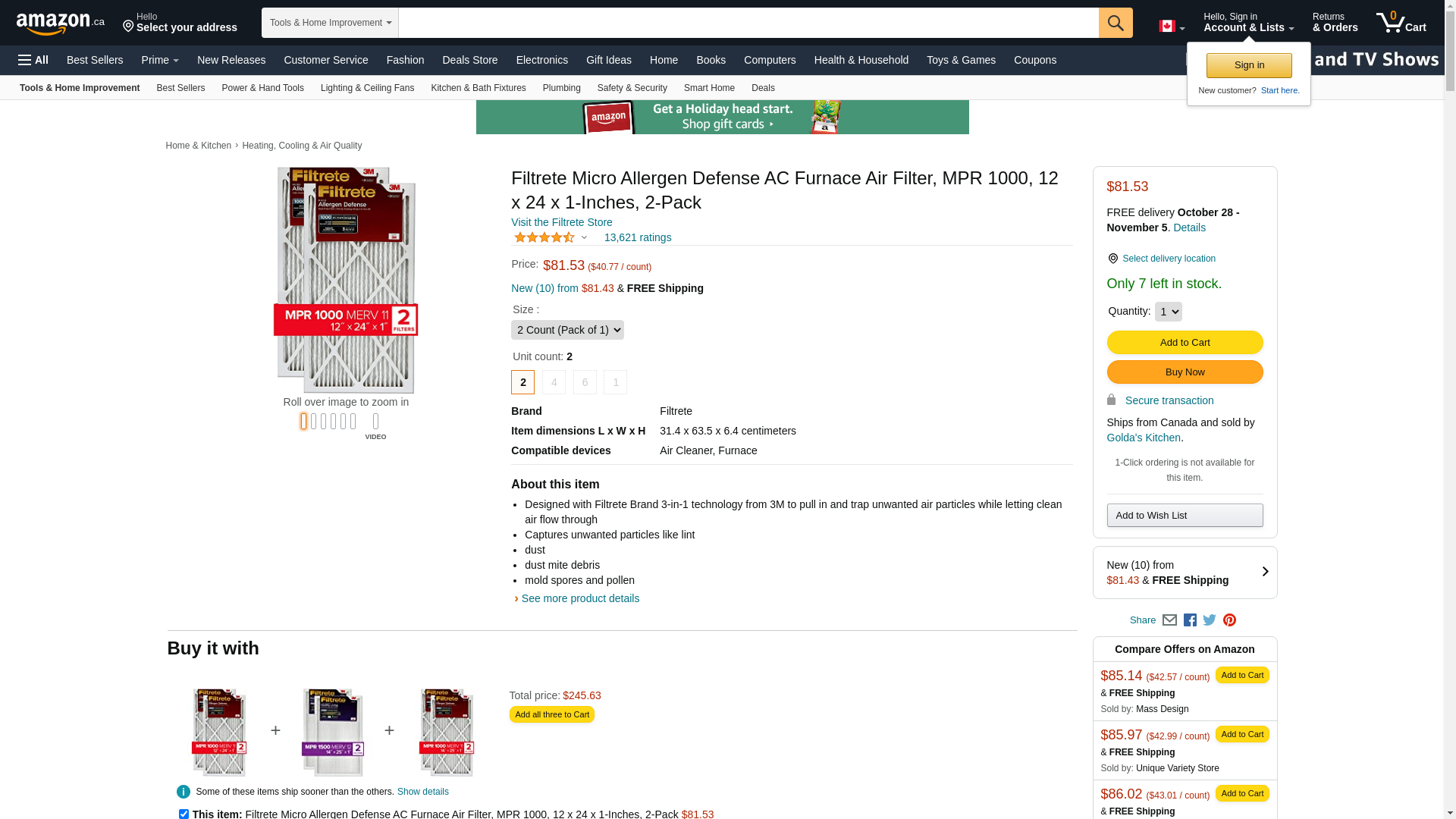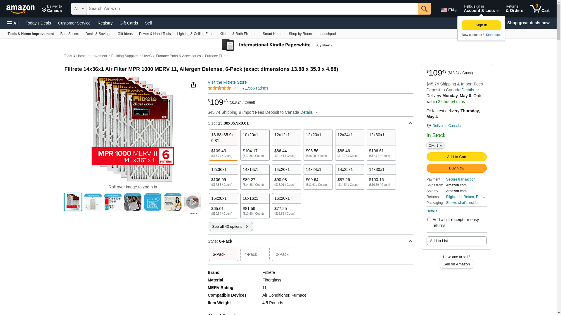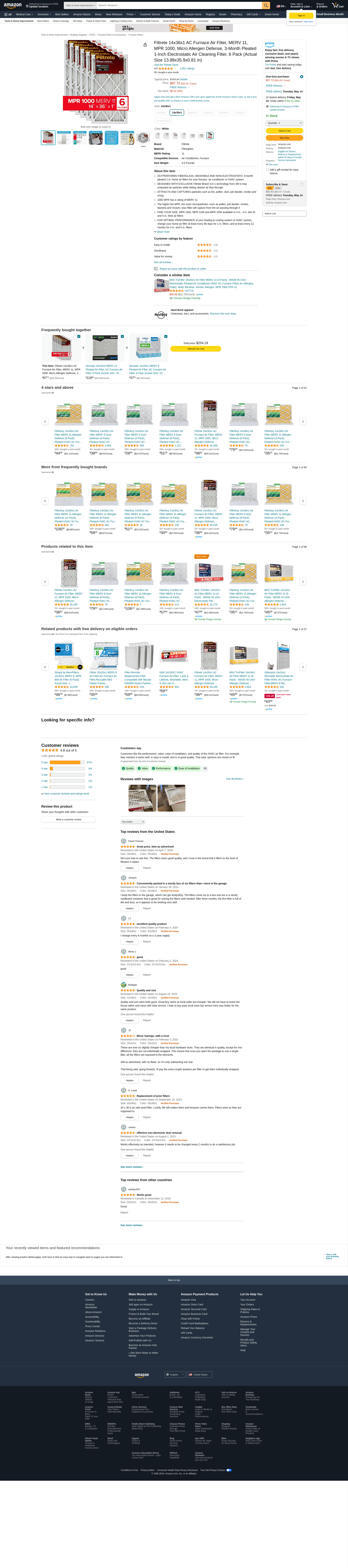 Filtrete MPR 1000 14 x 36 x 1 Micro Allergen Defense HVAC Air Filter, 6-pack