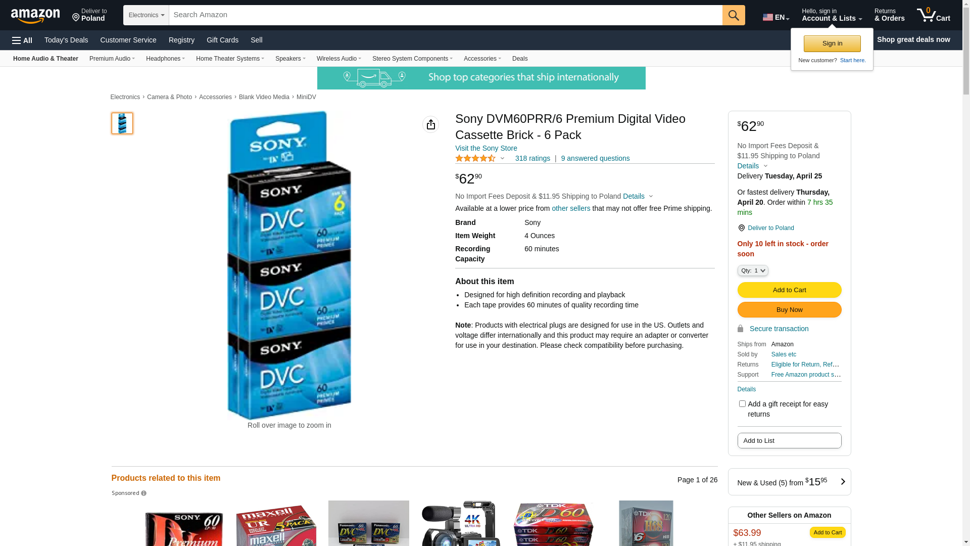 Sony DVM60PRR/6 Premium Digital Video Cassette Brick - 6 Pack