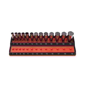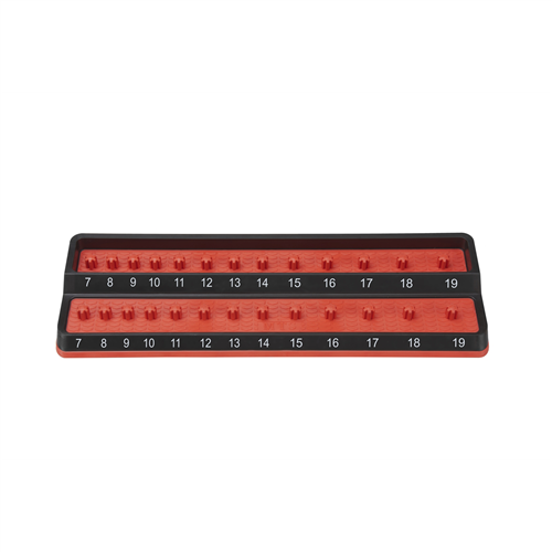 3/8" Peg Socket Holder, metric, red Friction Peg Socket Holders are designed for Shallow & Deep Sockets . Made of a rubber over mold with easy to read socket size indicators . These two-row socket holders can be stored in a drawer, toolbox, or tool cart . Perfect for easily moving sockets from the toolbox to workstation and back without falling off. PSH38M-RED No -
