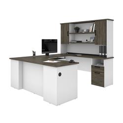Bestar Norma U or L-Shaped Executive Desk with Hutch, 71W, Walnut Grey & White