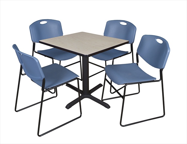 Cain 30" Square Breakroom Table- Maple & 4 Zeng Stack Chairs- Blue