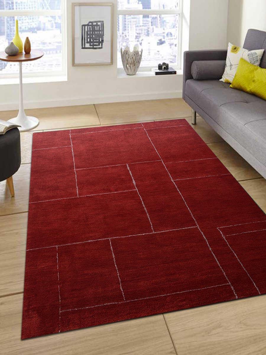 212 Main USLS1223L2601A9 Hand Knotted Gabbeh Silk 5 x 8 ft. Geometric Area Rug, Red & Beige