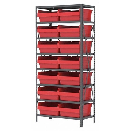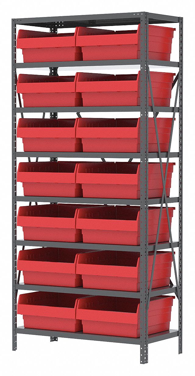 Akro-Mils AS187930818R Steel Shelving Kit with 16 Bins, 18" x 36" x 79", Gray/Red