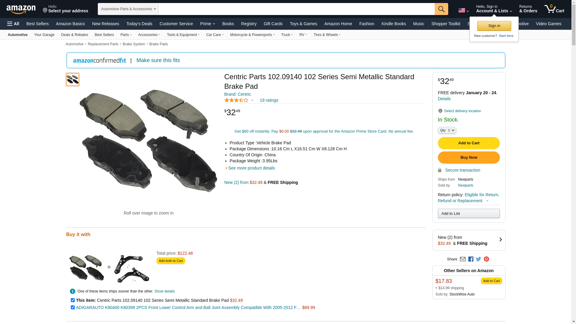 ![]() StockWise Auto | CEN-102.09140 | 1 | 1 | 1 @ $10.51 | |