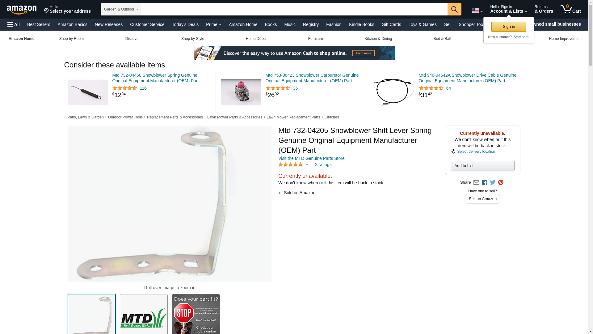 Brand: MTD <BR><BR> Known Brand Compatibility, Replaces / For: MTD <BR><BR><BR> Part Number: 732-04205 <BR><BR> Prior Numbers / Substituted Part Numbers / Replacement for: 732-04205 <BR><BR> Genuine OEM CUB CADET Part Number 732-04205<br><br>MTD Shift Lever Spring # 732-04205