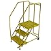 Tri-Arc WLWP132424SL-Y 3-Step Froward Descent Mobile Steel Work Platform with Handrails, Step Lock, 24" x 24" Platform, Safety Yellow Powder Coated Finish, 66" Height, 35" Width, 43" Length