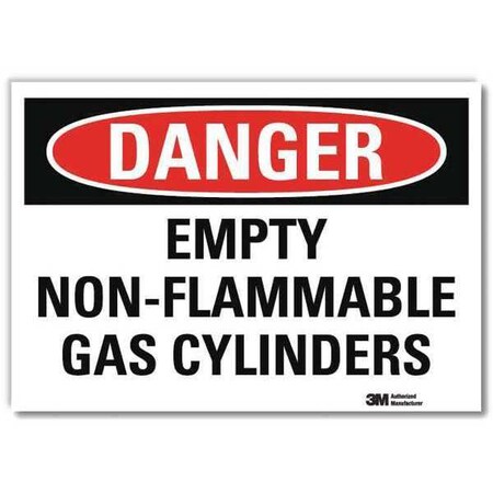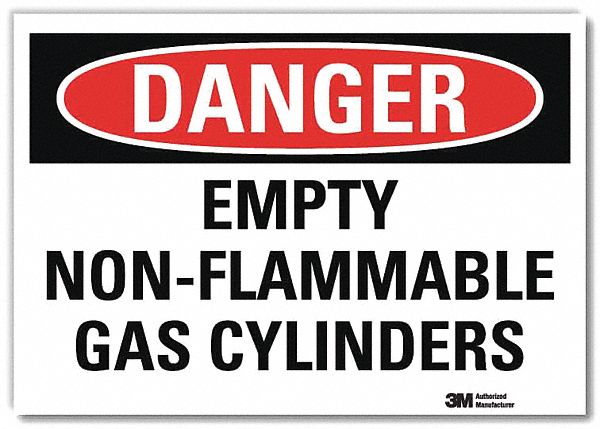 Danger Sign, Horizontal Rectangle, Number of Printed Sides 1, English, Sign Format Traditional OSHA, Sign Legend Empty Non-Flammable Gas Cylinders, Sign Legend Background Color White, Sign Legend Style Text