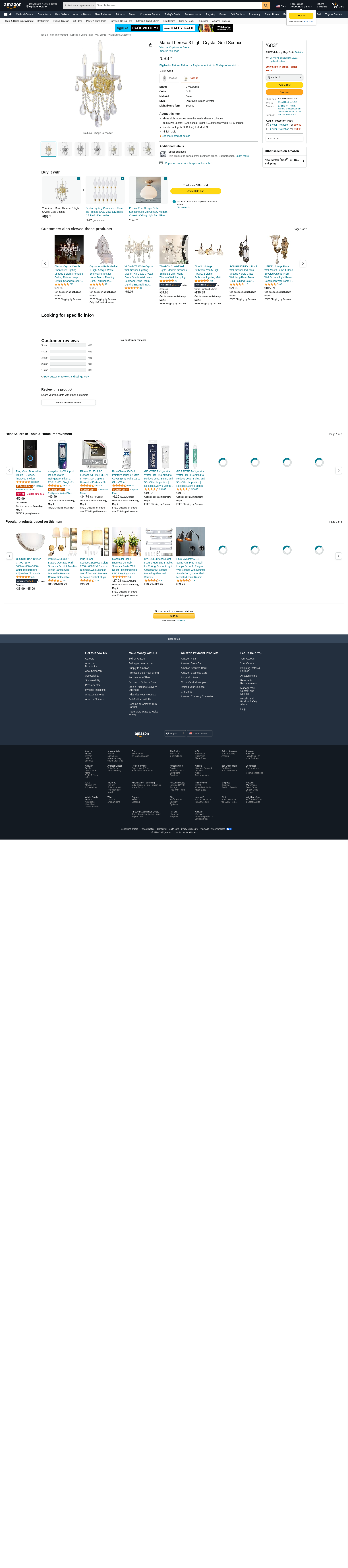 Crystorama 4423-GD-CL-S Crystal Three Light Sconces from Maria Theresa collection in Gold, Champ, Gld Leaffinish, 8.00 inches