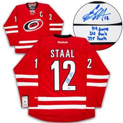 Autograph Authentic STAE16700C Carolina Hurricanes Eric Staal Signed with Franchise Stats Premier Hockey Jersey