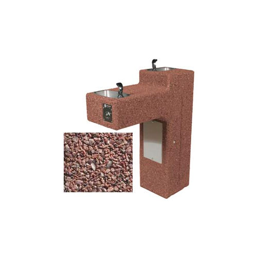 Concrete Dual Station Outdoor Pedestal Drinking Fountain, Freeze Resistant, ADA, Red
