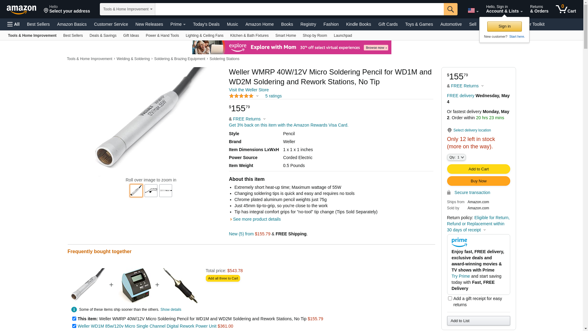 Weller WMRP 40W/12V Micro Soldering Pencil for WD1M and WD2M Soldering and Rework Stations, No Tip