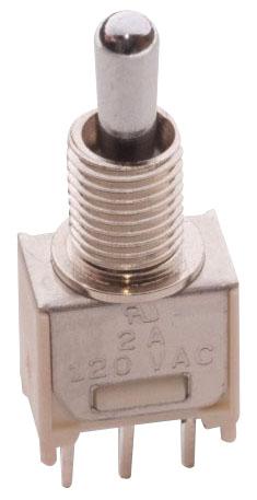 Switch Toggle ON None ON SPDT Round Lever PC Pins 20VAC 20VDC 0.4VA PC Mount with Threads