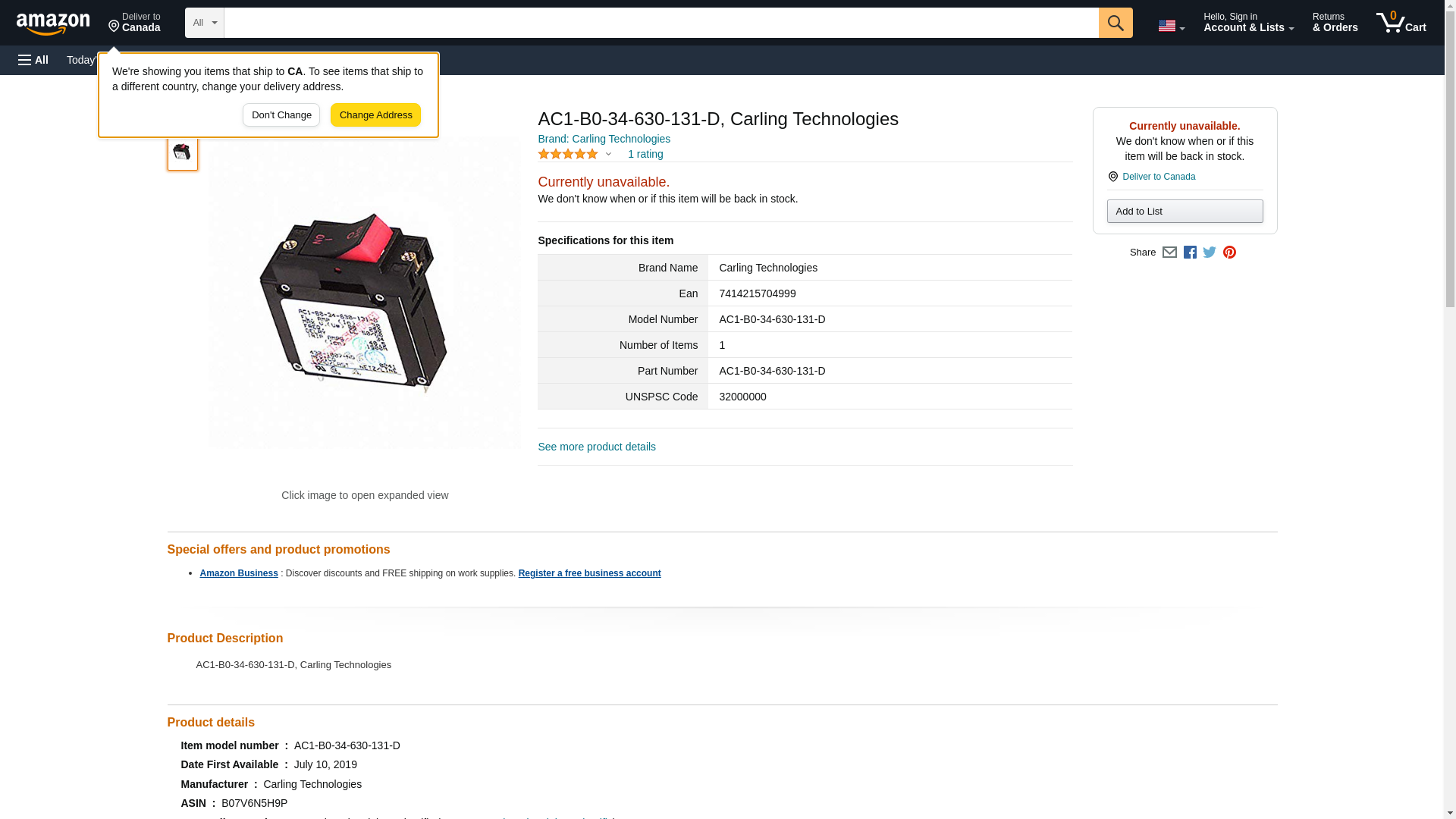 Carling Technologies - AC1-B0-34-630-131-D - Circuit Breaker, A-Series, Hydraulic-Magnetic - RS