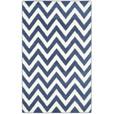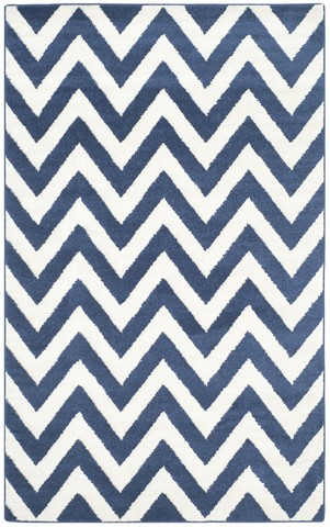 SAFAVIEH Amherst Collection Area Rug - 5'3" x 8', Navy & Beige, Chevron Design, Non-Shedding & Easy Care, Ideal for High Traffic Areas in Living Room, Bedroom (AMT419P)