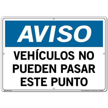 Vestil Spanish Notice Sign SI-N-69-E-AL-040-S Aluminum 0.04 Overall Size 20.5"W x 14.5"H. VEHÍCULOS NO PUEDEN PASAR ESTE Punto, (No Vehicles Beyond This Point).