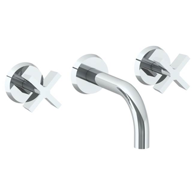 WATERMARK 37-2.2S-BL3-EB BLUE THREE HOLES WALL MOUNT BATHROOM FAUCET WITH 5 5/8 INCH SPOUT REACH, EBONY, ROYAL HANDLE