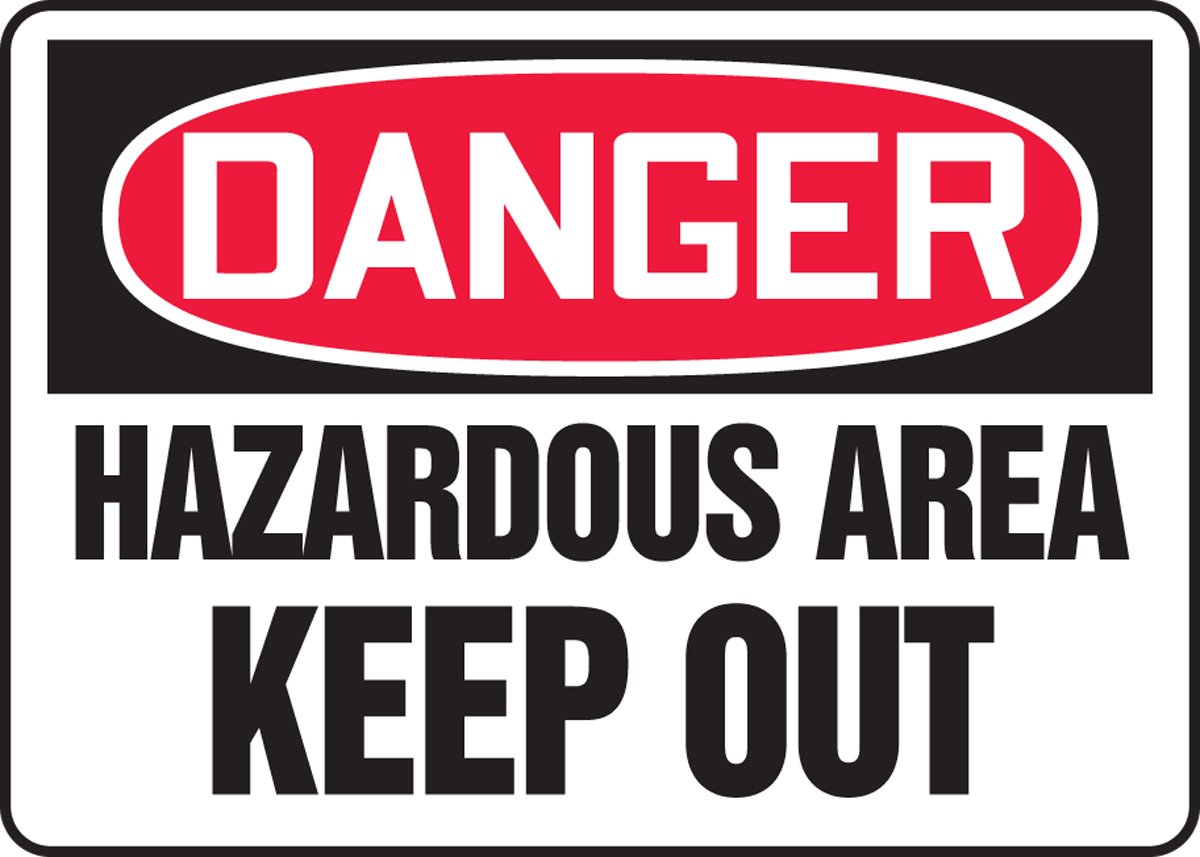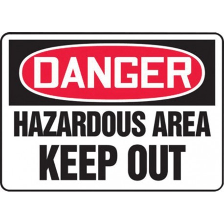 MADM044VP, 10" x 14" OSHA Danger Safety Sign "Hazardous Area Keep - Keep Out" Plastic Features: Light abrasion and chemical resistance that will not rust, chip, or crack Fluted polypropylene .160 thick Requires mounting to a wall or fence Withstands wet, damp, and other limited environmental exposure Finished with square corners and four mounting holes