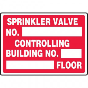 Sprinkler Valve No. _____ Controlling Building No._____ _____Floor 10" x 14" - MSPK505XF - Jendco Safety Supply