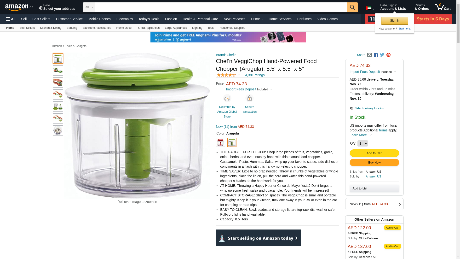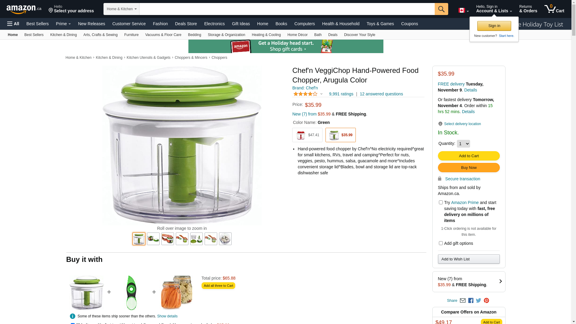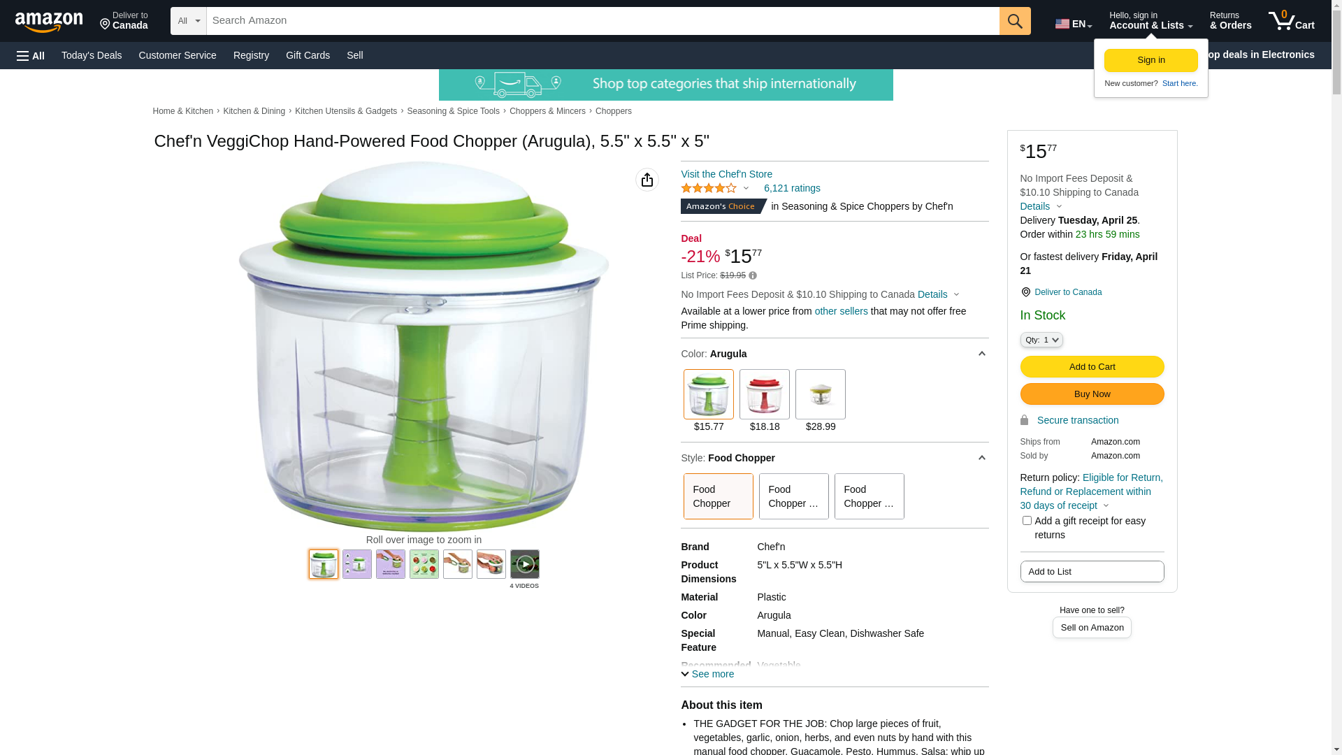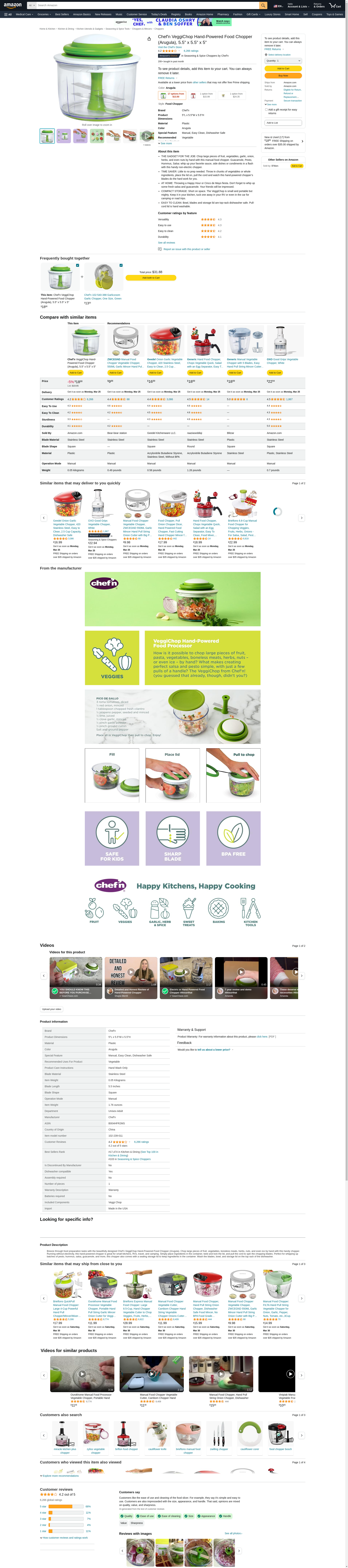 Chef'n VeggiChop Hand-Powered Food Chopper (Arugula), 5.5" x 5.5" x 5"