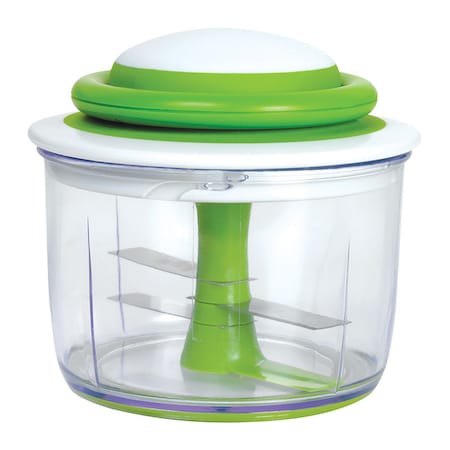 Chop large pieces of vegetables or fruit, nuts, herbs, boneless meats, or even ice by hand in this manual food processor. Create fresh salsas and pestos simply, with just a few pulls of a handle.<BR>Colour/Pattern: Arugula green<BR>Materials: Stainless steel blades<BR>Care: Bowl and blade are top rack dishwasher safe