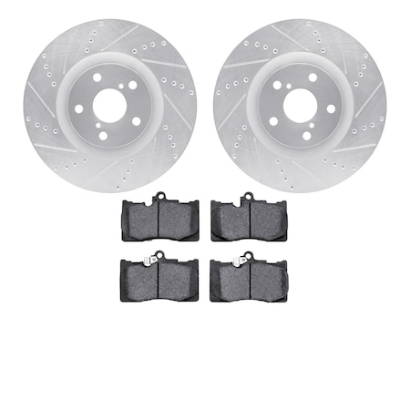Dynamic Friction Company Front Brake Rotors Drilled and Slotted Silver with 5000 Euro Ceramic Brake Pads - 7602-75007