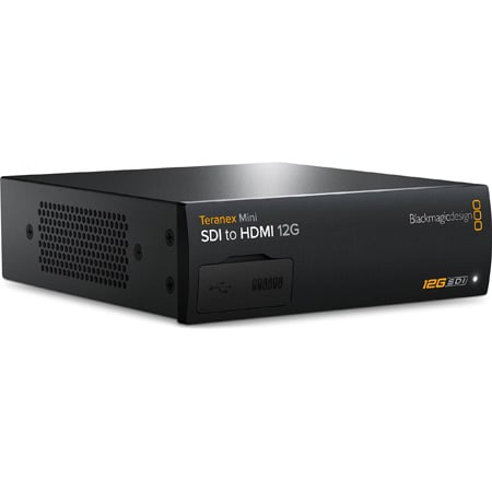 The Blackmagic Design <strong> Teranex Mini Converter SDI to HDMI 12G </strong> converts from 12G-SDI to HDMI. It supports all video formats including SD, HD, 6G and 12G-SDI rates and includes a down converter that will select the highest Ultra HD format your equipment can support. You also get to de-embed audio to balanced analog or AES/EBU formats and a timecode output. Perfect for using HDMI televisions as SDI broadcast monitors and for connecting to video projectors.</p><p>The Teranex Mini converters make building facilities and supporting all different types of video equipment easier than ever before. Teranex Mini is perfect for broadcast installations because they can be rack mounted and the optional front panel lets you see what's being converted on the screen! They can even be remote managed over ethernet. Their compact size makes them great for portable racks at live events or in broadcast trucks, plus they have professional XLR audio connections for connecting to mixers and other audio gear! You can even use them in editing and color grading suites to drive big screen displays and projectors!</p>