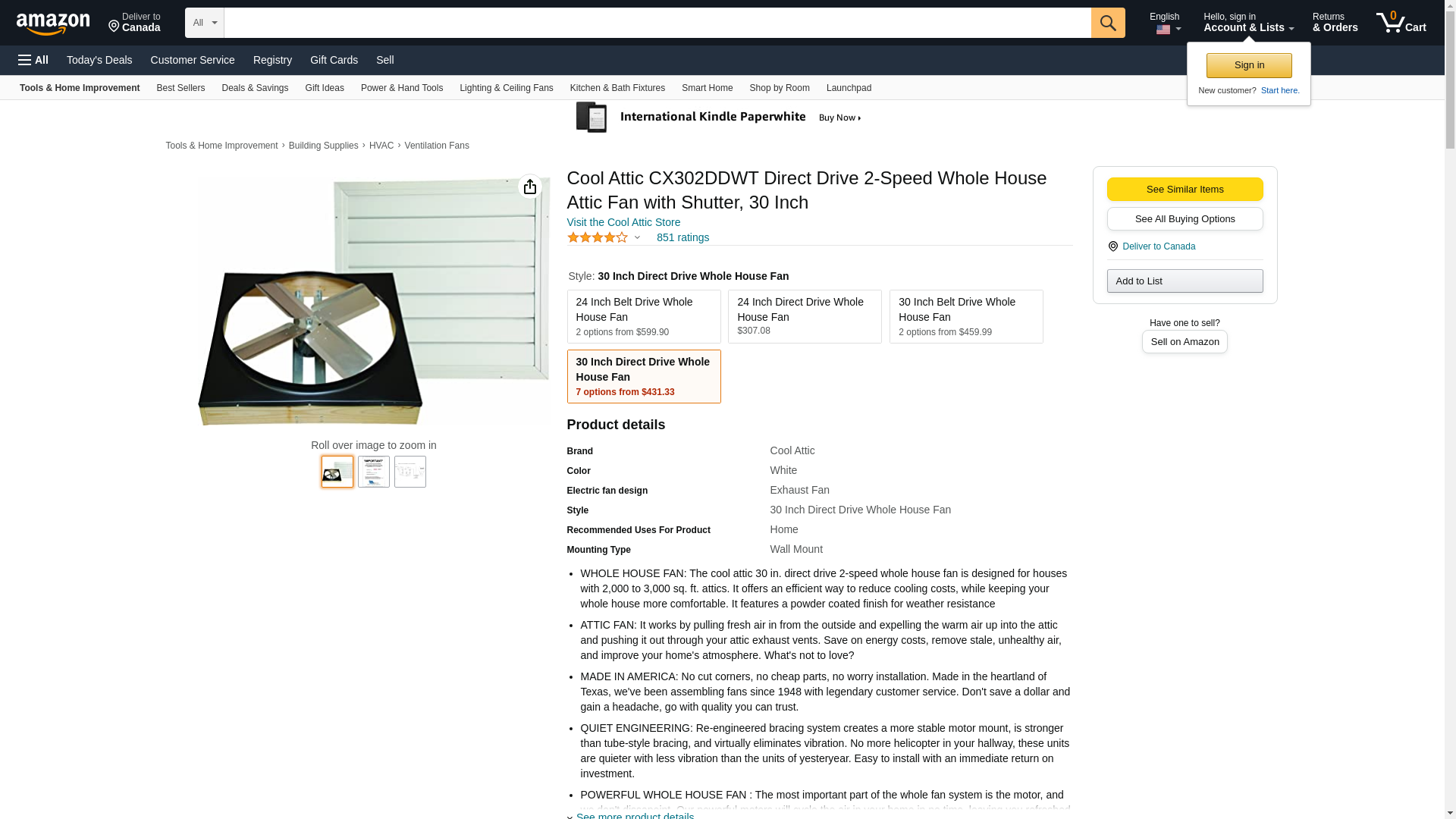 - Item: Direct Drive Whole House Fan 30in; Exhaust/Supply Fan Item: Exhaust Fan; Country of Origin (subject to change): Multiple