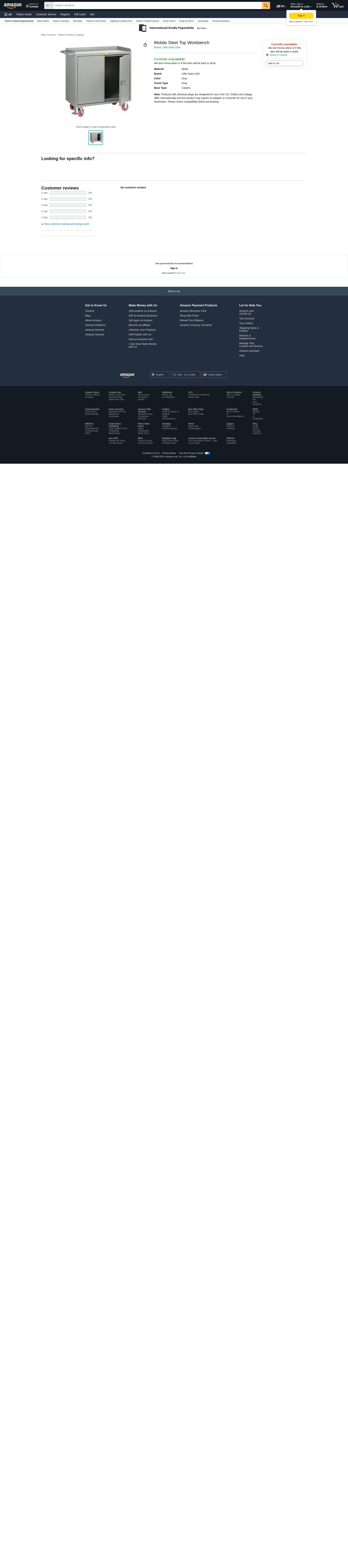 MB-2D-2448-FL Features: -Secure 3 point latching system with keyed handle locks the doors at top, center and bottom. -The top work surface is surrounded by retaining lip on three sides. -2 Swivel and 2 rigid non-marking polyurethane wheels. -Floor lock on the handle end securely positions the workbench. -All-welded 12-gauge construction. -Top work surface material: Powder coated steel. Finish: -Gray. Weight Capacity: -3600 Pounds. Country of Manufacture: -United States. Wheels Included: -Yes. Cabinets Included: -Yes. Top Material: -Metal. Frame Material: -Metal. Dimensions: -Top work surface dimensions: 41" H x 24" W x 48" D. Overall Height - Top to Bottom: -43.5". Overall Width - Side to Side: -53.5". Overall Depth - Front to Back: -24". Overall Product Weight: -223 lbs.