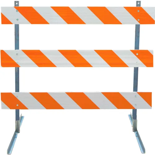 Plasticade Type III Barricade W/ Angle Iron Uprights & Feet, HIP Striped Sheeting