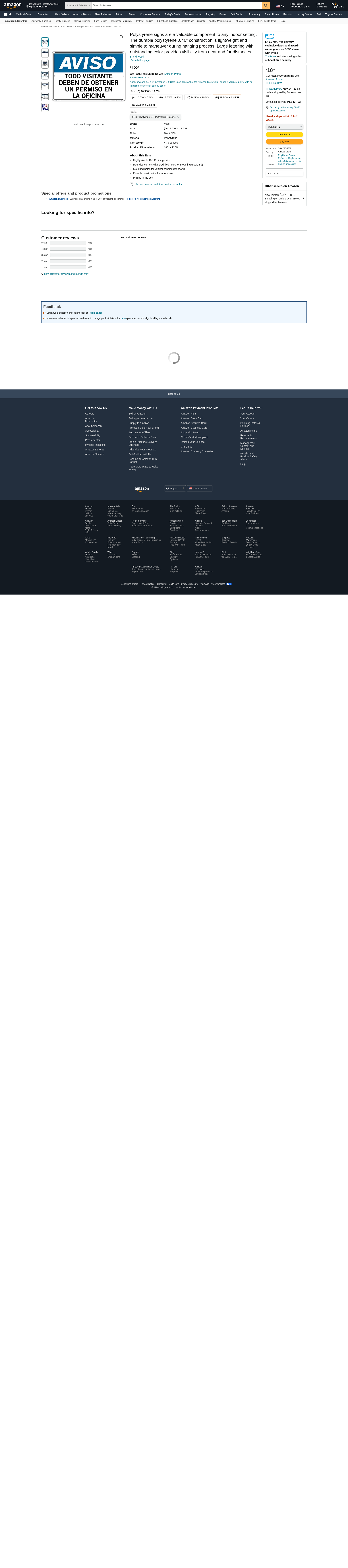 Vestil SI-N-33-D-PS-040-S Spanish Sign-Notice-33 18.5" X 12.5" Polystyrene .040" Thickness | MROSupply.com