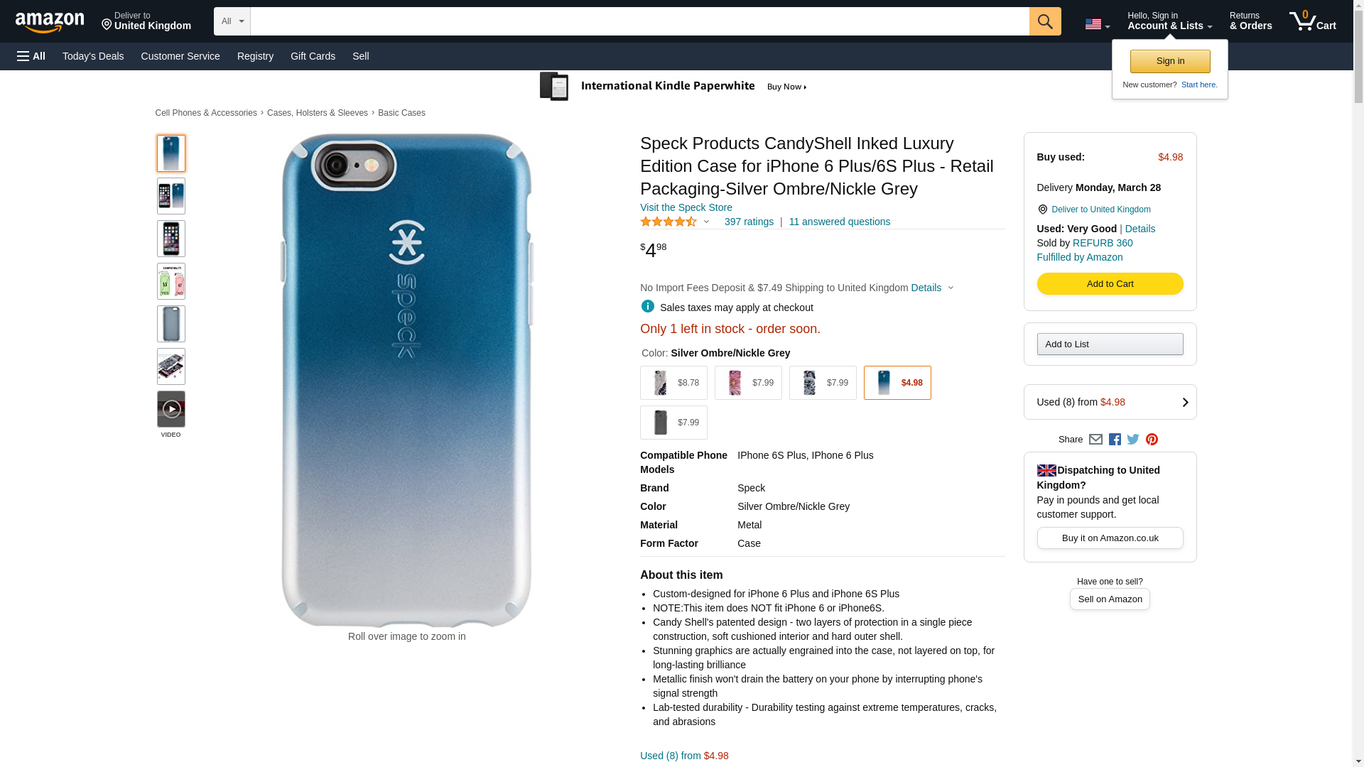 Speck Products CandyShell Inked Luxury Edition Case for iPhone 6 Plus/6S Plus - Retail Packaging-Silver Ombre/Nickle Grey: Maxedbuy.com
