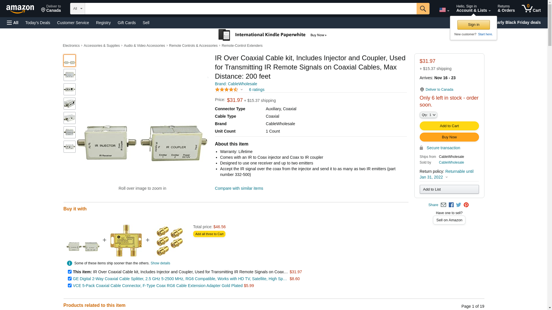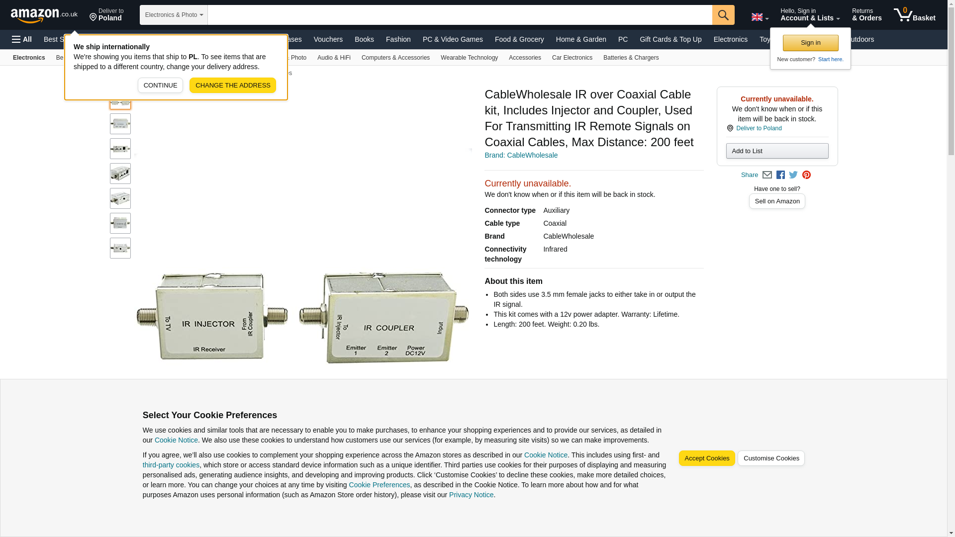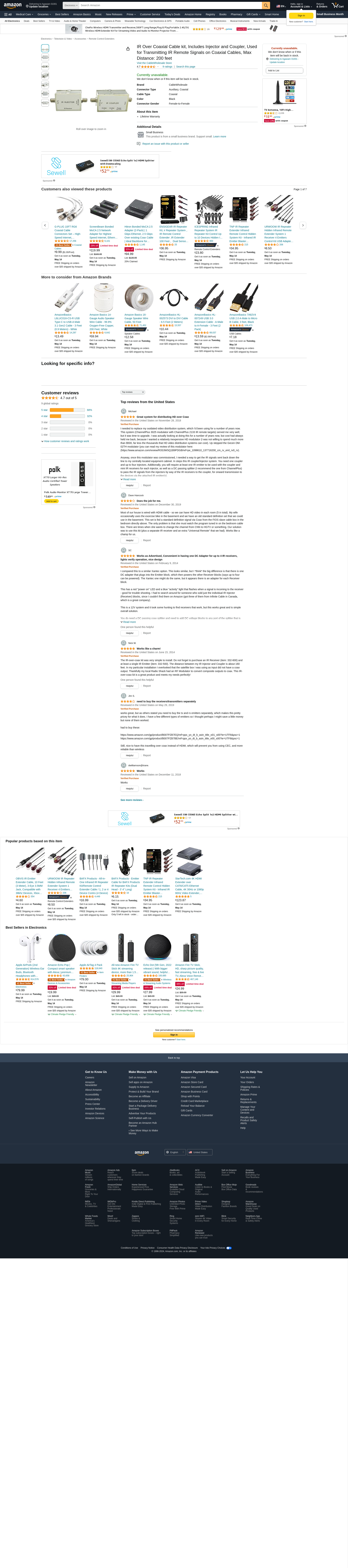 IR Over Coaxial Cable kit, Includes Injector and Coupler, Used for Transmitting IR Remote Signals on Coaxial Cables, Max Distance: 200 feet