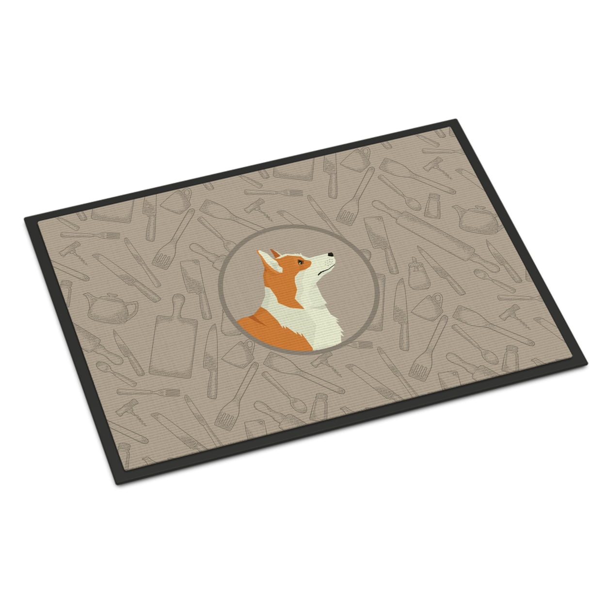 24 x 36 in. Pembroke Corgi in the Kitchen Indoor or Outdoor Mat