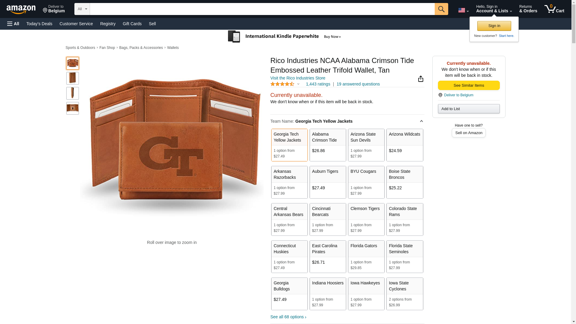 Rico Industries NCAA Embossed Leather Trifold Wallet, Georgia Tech Yellow Jackets, 3.25 x 4.25 inches , Brown