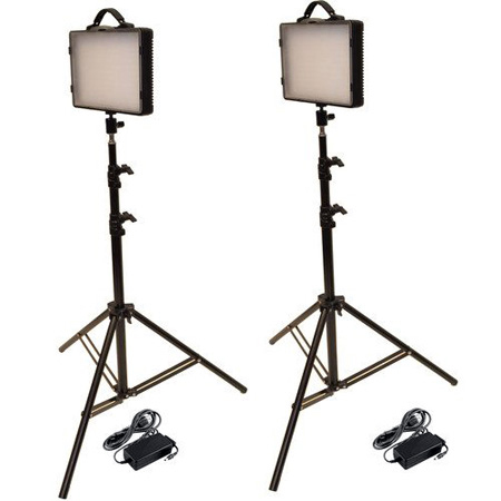 Dimmable Studio Light Kit This is a set of two upgraded Bescor LED200K light panels and stands The upgrade has transformed these lights to include 304 5mm LEDs each Each panel now provides a 300W equivalent output with a 5500K color temperature When you receive these lights you will find an LED300K label on them instead of LED200K but this is only to indicate that they are the upgraded versionAs part of the upgrade two orange correction filters have been included in addition to the existing soft white diffusers The light stands offer a maximum height of 74 The two panels total to approximately 6 lb A padded carrying case is also includedFeatures. Dimmable to 25. 5500 LUX at 50cm. 6500K Color Temperature. 210 Pieces of Super Bright 10mm LED Bulbs. Powered by 12v DC Input. Light Stands 74 at Max ExtensionSpecifications. Weight 16 7 lbs