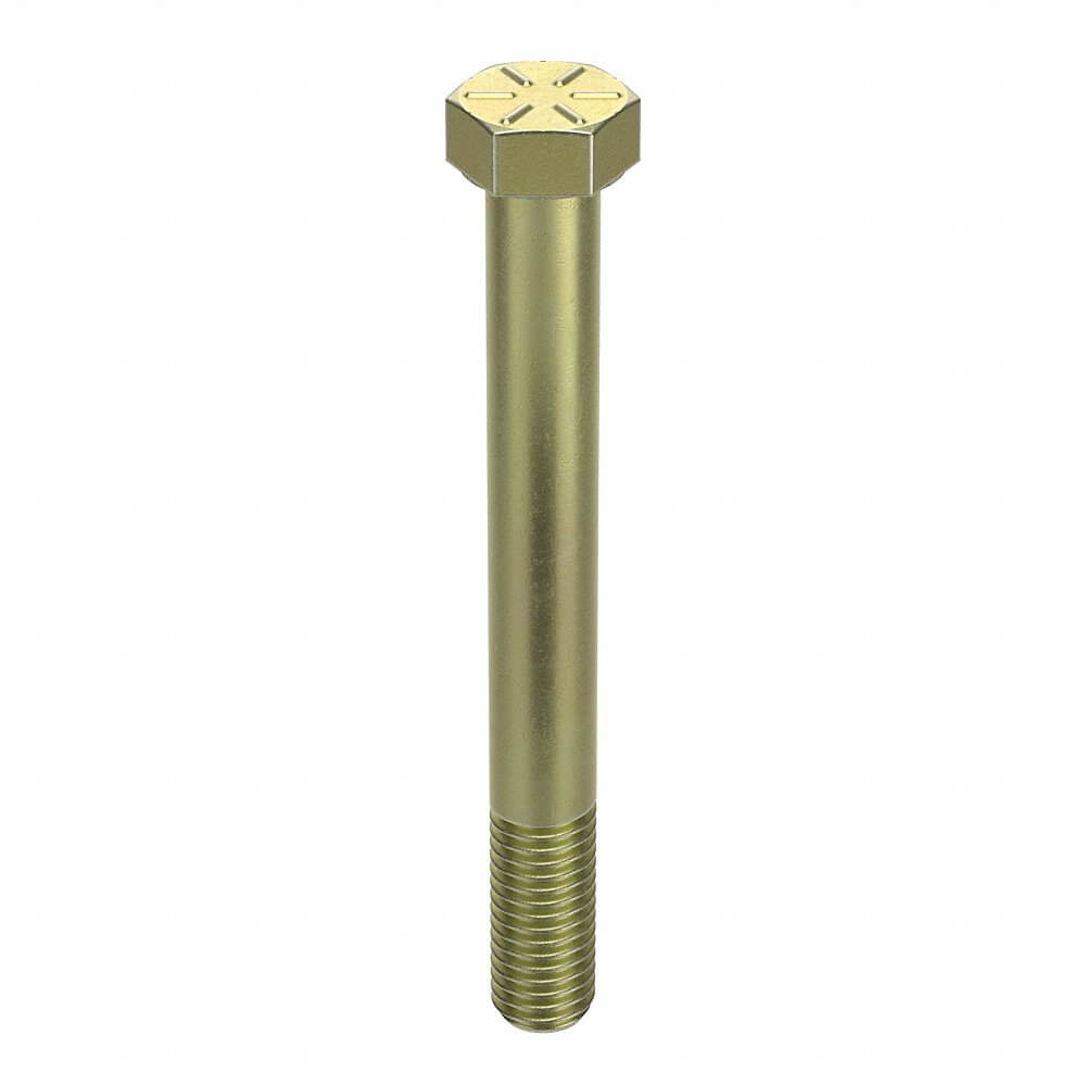 Hex Head Cap Screw, System of Measurement Inch, Basic Material Steel, Material Grade Grade 8, Fastener Finish Zinc Yellow, Dia./Thread Size 1/2 In.-13, Fastener Length 4 1/4 in, Fastener Thread Direction Right Hand, Fastener Thread Type UNC (Coarse), Fastener Thread Style Partially Threaded, Fastener Industry Standards ASME B18.2.1, Head Type Hex, Min. Thread Length 1 1/4 in, Head Height 5/16 in, Head Width 3/4 in, Package Quantity 5