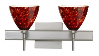 Besa Lighting 2SW-177941-SN-SQ 2X40W G9 Mia Wall Sconce with Canopy Garnet Glass, Satin Nickel Finish